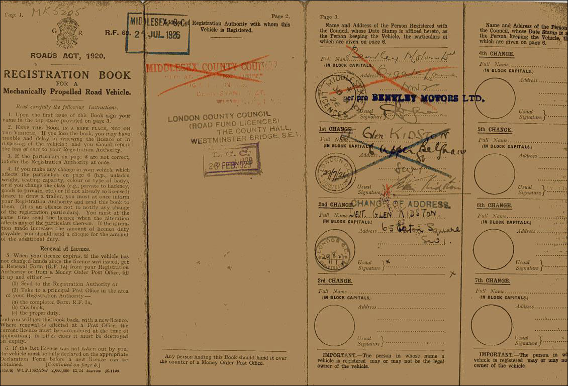 | More Info: | According to original Vanden Plas Coachbuilder records, this car was originally fitted with Body No. 1294 with a 4-seater Speed model for Le Mans 24 Hour race; 6/1926. Team car driven by Kidston. Michael Hay, in his book Bentley: The Vintage Years, 1997, states: "Vanden Plas body no. 1294. 1926 Le Mans car. Fitted 4� Litre engine UK 3297 1936 - LM 1342 was in ch. RE 1400, now back in this chassis. D box, registered 803 PMN. Rebuilt for 1927 Le Mans but not used (YF 2503 ch. ML substituted). "8/27 prepared for Boulogne." (Boillot Cup races.)" |