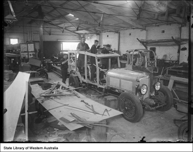 "Western Australian State Library records show that the original bodies for this car and its sibling LR2785 were built at Bryan's Motor Body Works, 422A Hay Street Perth, for the W A Police Department. This is also mentioned in the contemporary press. The State Library has a photograph of one of the cars under construction at Bryan's Motor Body Works in its photograph collection.
