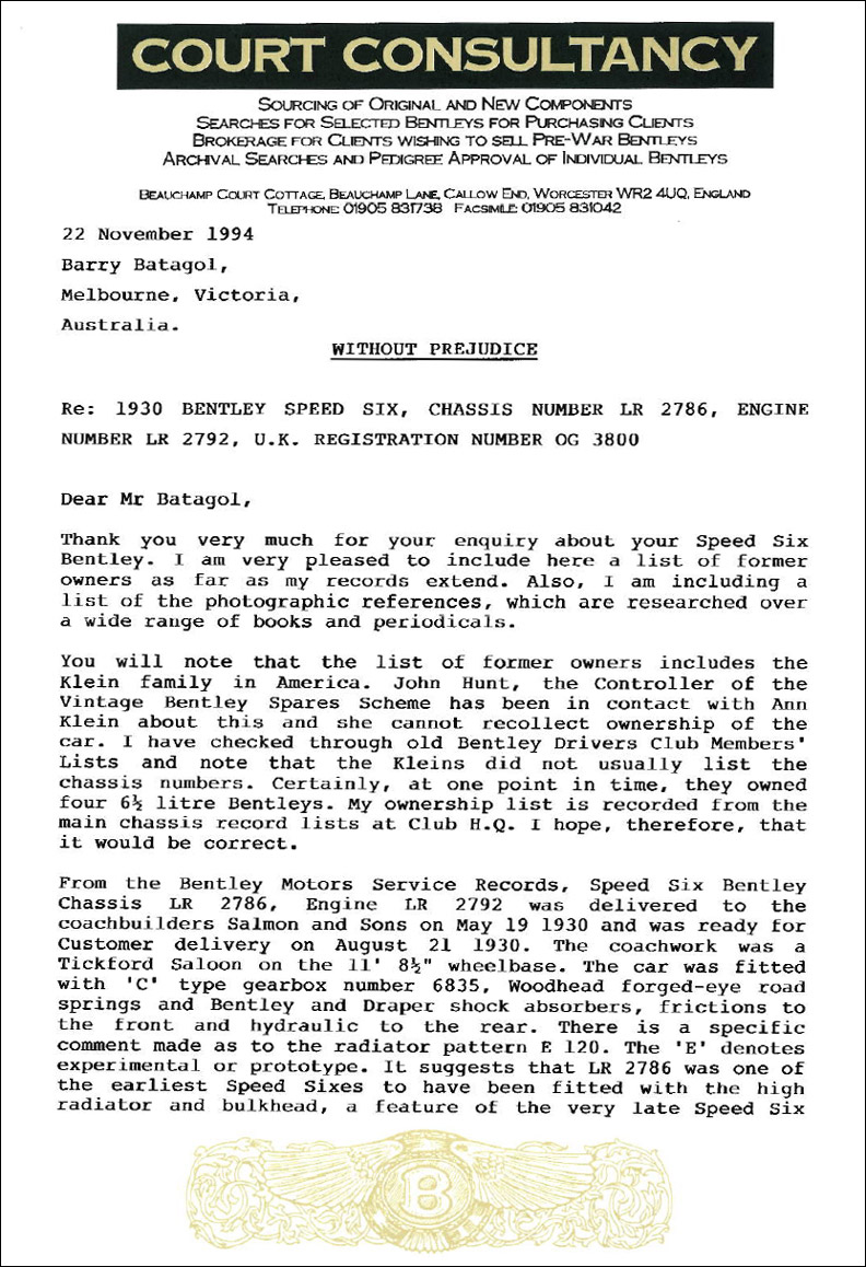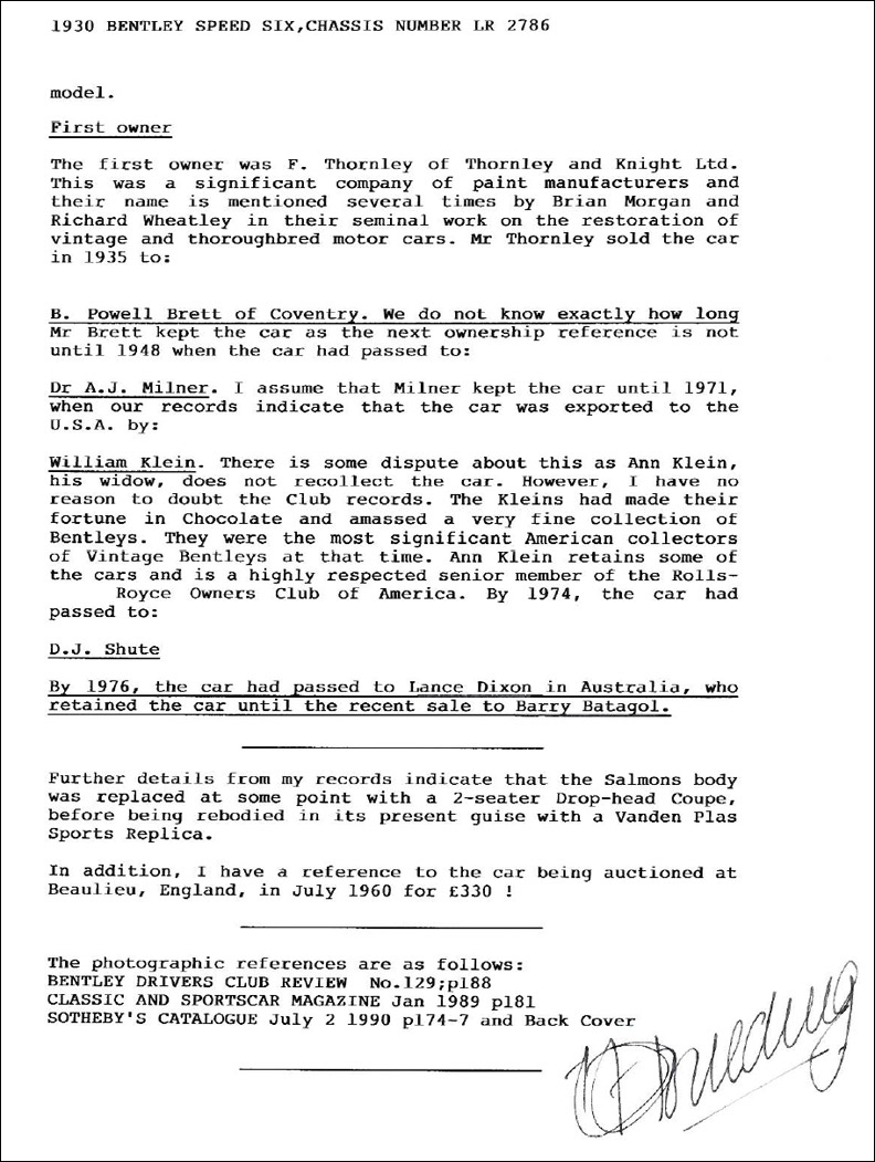 Source: The Bentley Drivers Club of Australia & Barry Batagol (Owner)
