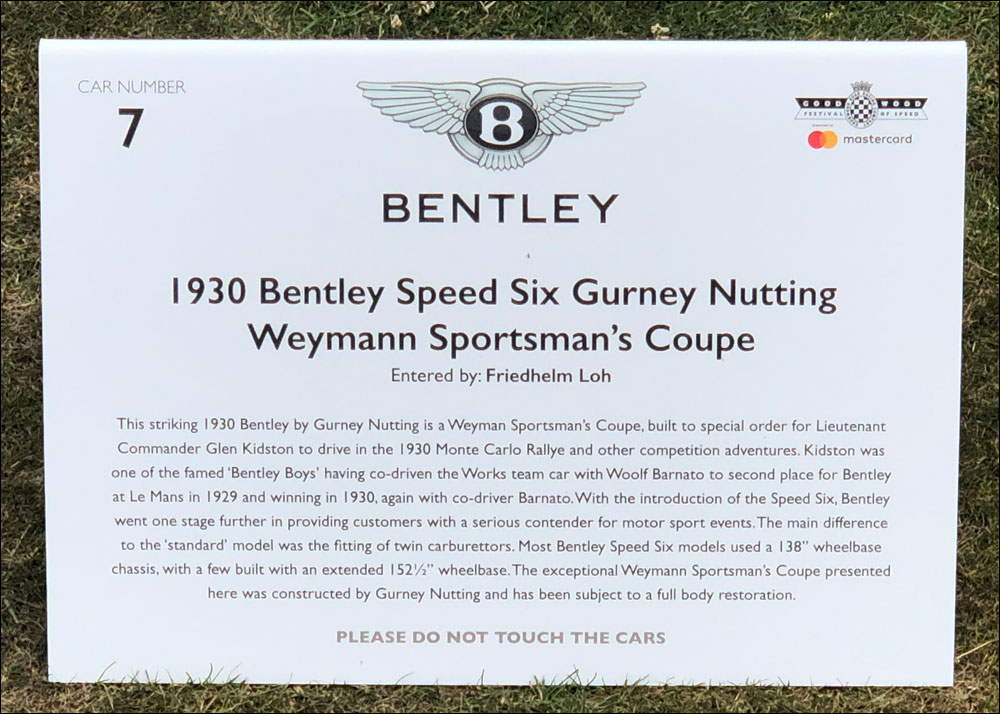 "This 1930 Bentley by Gurney Nutting is a Weyman Sportsman's Coupe built to special order for Lieutenant Commander Glen Kidston to drive in the 1930 Monte Carlo Rallye and other adventures.