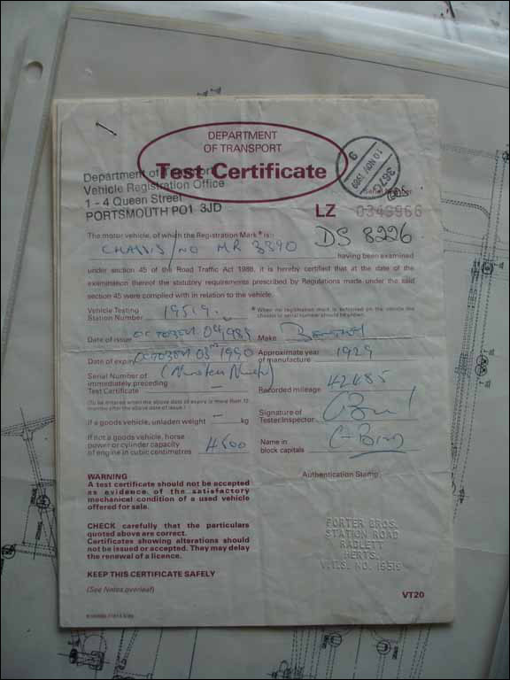 | More Info: | Michael Hay, in his book Bentley: The Vintage Years, 1997, states: "Re-reg WG 8032. Was in SA - now in UK reg DS 8226. Original body still fitted." |