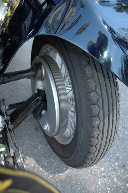The original engine MR3393 is also retained, and the specification build sheet indicates that a C type gear box number 6510 was used and other fittings include an inside battery tray with interchangeable double batteries, Tecalamite one-shot chassis lubrication system, Cambridge thermometer gage, and steering wheel set 16" from the frame.
