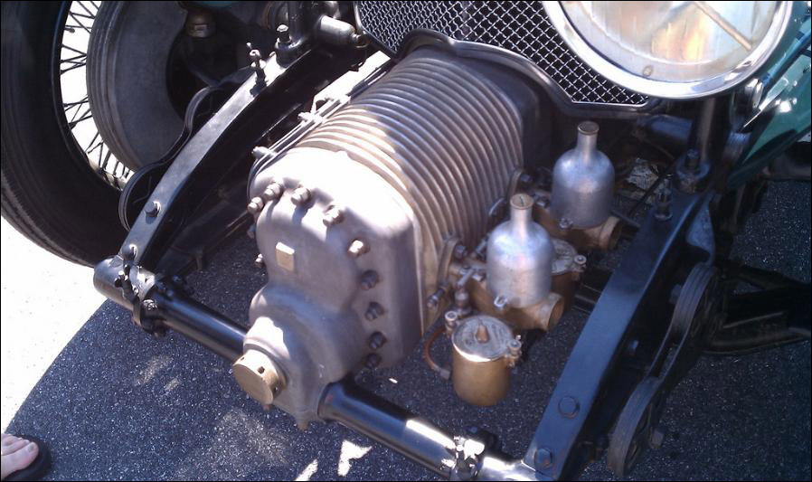 The supercharger operates on Rootes principles, with two synchronized twin lobe rotors. The boost given was 10 psi at 25 miles per hour in top gear and does not exceed 11 psi at the highest engine speeds. With this engine and a light single-seater body, the car established the Brooklands Outer Circuit Record at 137.9 miles per hour. These cars were impressive in their power and speed, but were not yare and therefore unsuccessful racing cars. Even in local British Racing Drivers Club competition, they usually retired in the 500 mile race with one noteworthy second place finish in 1930. Because a supercharged Bentley traveled the fastest on the Brooklands banked circuit, the "Blower" will forever be a symbol of powerful British motoring. Its pyknic image in Rexene-clothed, cycle-fender, bells-and-whistled armor, with the ponderous blower menacing fore is an icon of the manly British bolide.