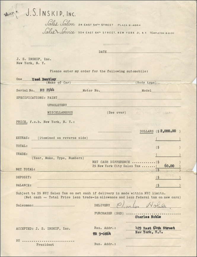 My father, who was very good at record-keeping, died in 1993. I found in his effects the papers for his purchase and sale of the car, and recently turned them over to the present owner in Germany, who gave me a chance to see it up close. I scanned the documents and would like to submit them as part of the historical record of the car.