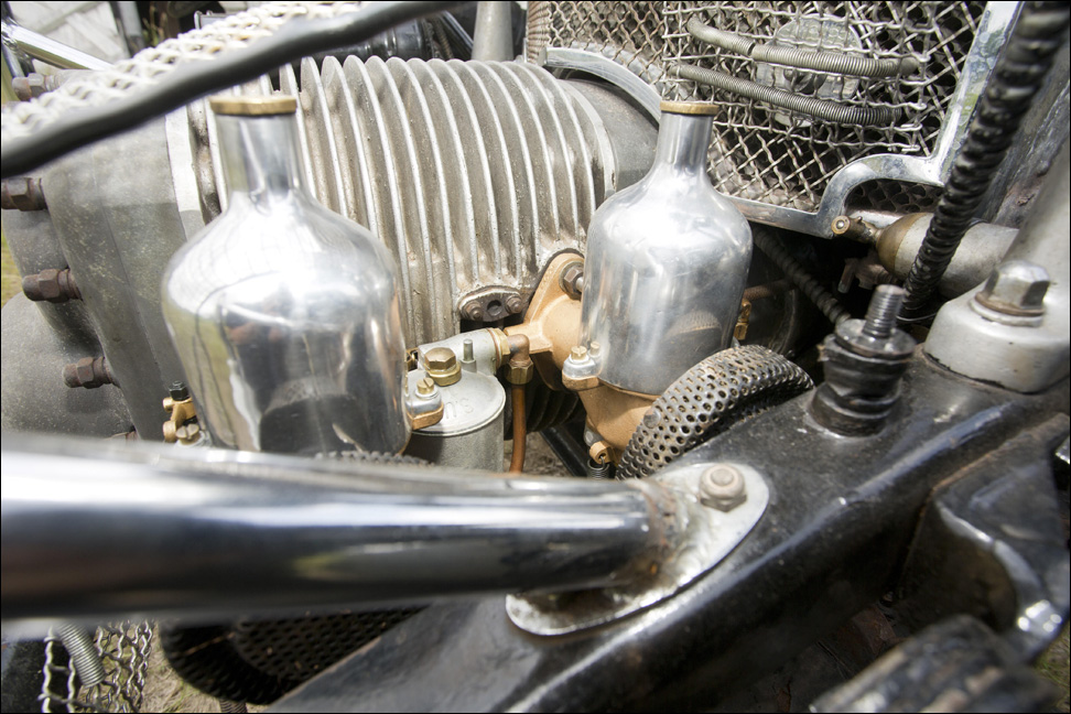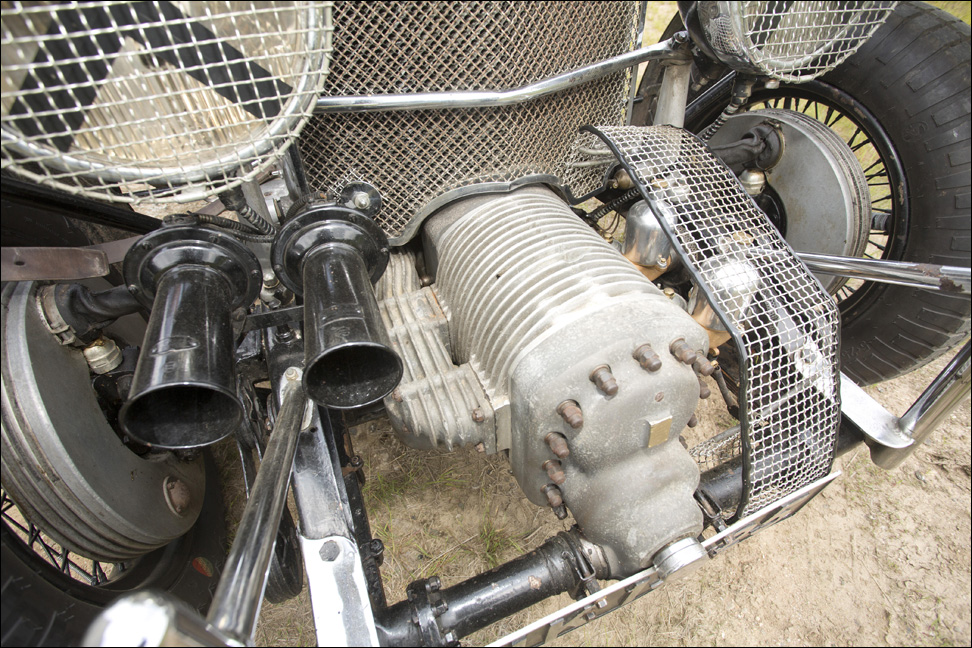 My father told me that he had never seen an engine before that you could not take the head off. He modified Ford tractor valves to replace the burned valves in the engine. From the picture you can also see that he used Stromberg carbs. He also made the exhaust which looks like it could cause some very serious burns."