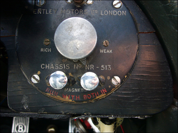 | More Info: | NR513 was Chassis no. 1059 Michael Hay, in his book Bentley: The Vintage Years, 1997, states: "Was 1059. Now 2 seat reg DS 6970 eng BL 1610 ex ch. BL 1611. Eng 1043 in ch. 398." |