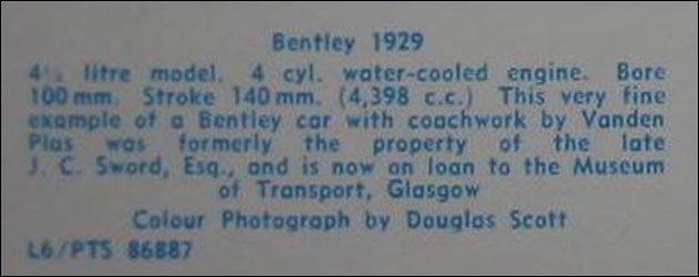 | More Info: | According to original Vanden Plas Coachbuilder records, this car was originally fitted with Body No. 1533 with a 4-seater Sports (as 1529); fabric/grey and black; 1/1929. Michael Hay, in his book Bentley: The Vintage Years, 1997, states: "D/6458. Vanden Plas body no. 1533. On display in Museum of Transport, Glasgow, for many years - also in Sword Collection." |