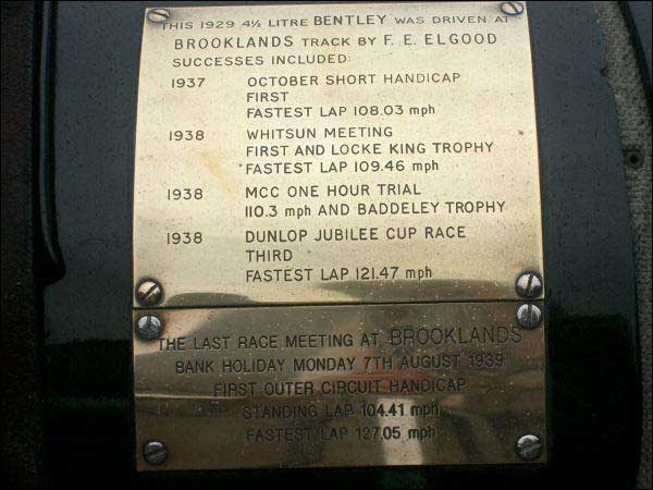 Well so much for the history but read on, there's more. The car was reunited with F.E. Elgood in 1969 some 30 odd years after his Brooklands experiences, and he confirmed this to be his car. All good race cars have bits added, altered and changed so in the end the anoraks have a job to identify what they are looking at. I don't have this problem as I am an active.