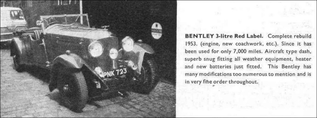 | More Info: | According to original Vanden Plas Coachbuilder records, this car was originally fitted with Body No. 1459 with a 10' 10½" wheelbase, 4-seater Tourer; 2/1928. Michael Hay, in his book Bentley: The Vintage Years, 1997, states: "Vanden Plas body no. 1459. Cut to 9' WB dismantled. Has spawned 2 cars - (1) Reg MP 2219 Vanden Plas 4 seater eng PM 3263 (2) Reg PNK 723 3cLitre engine 2 seater." |