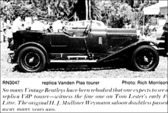 "So many Vintage Bentleys have been rebodied that one expects to see a replica VDP tourer — witness the fine one on Tom Lester's early 4� Litre. The original H. J. Mulliner Weymann saloon doubtless passed away many years ago."