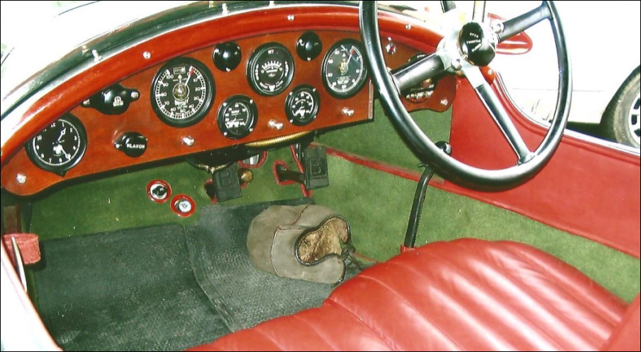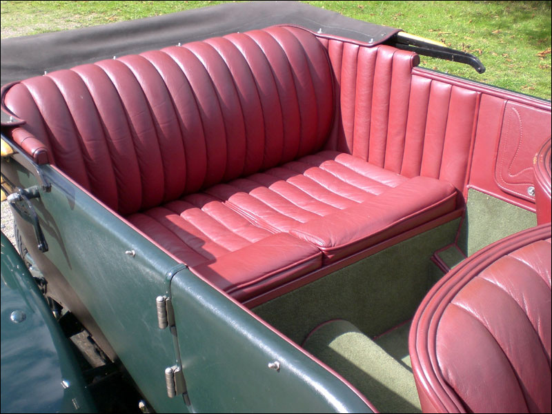The vendor too has entrusted maintenance of the open four-seater to FS Racing. Starting readily upon inspection and showing good oil pressure from cold, the Bentley presents very nicely. More original than many a 3 Litre, chassis RT1537 has the added advantage of a substantial ownership chain. Elegantly proportioned and well finished, its Vanden Plas-style coachwork is trimmed with red leather upholstery and (red-piped) green carpets. The black double duck hood is a good fit and suits the car's lines, while other pleasing details comprise a winged 'B' mascot, rear-mounted spare wheel, Bentley Drivers Club badge, AT 100mph Model De Luxe speedometer and twin klaxon horns.