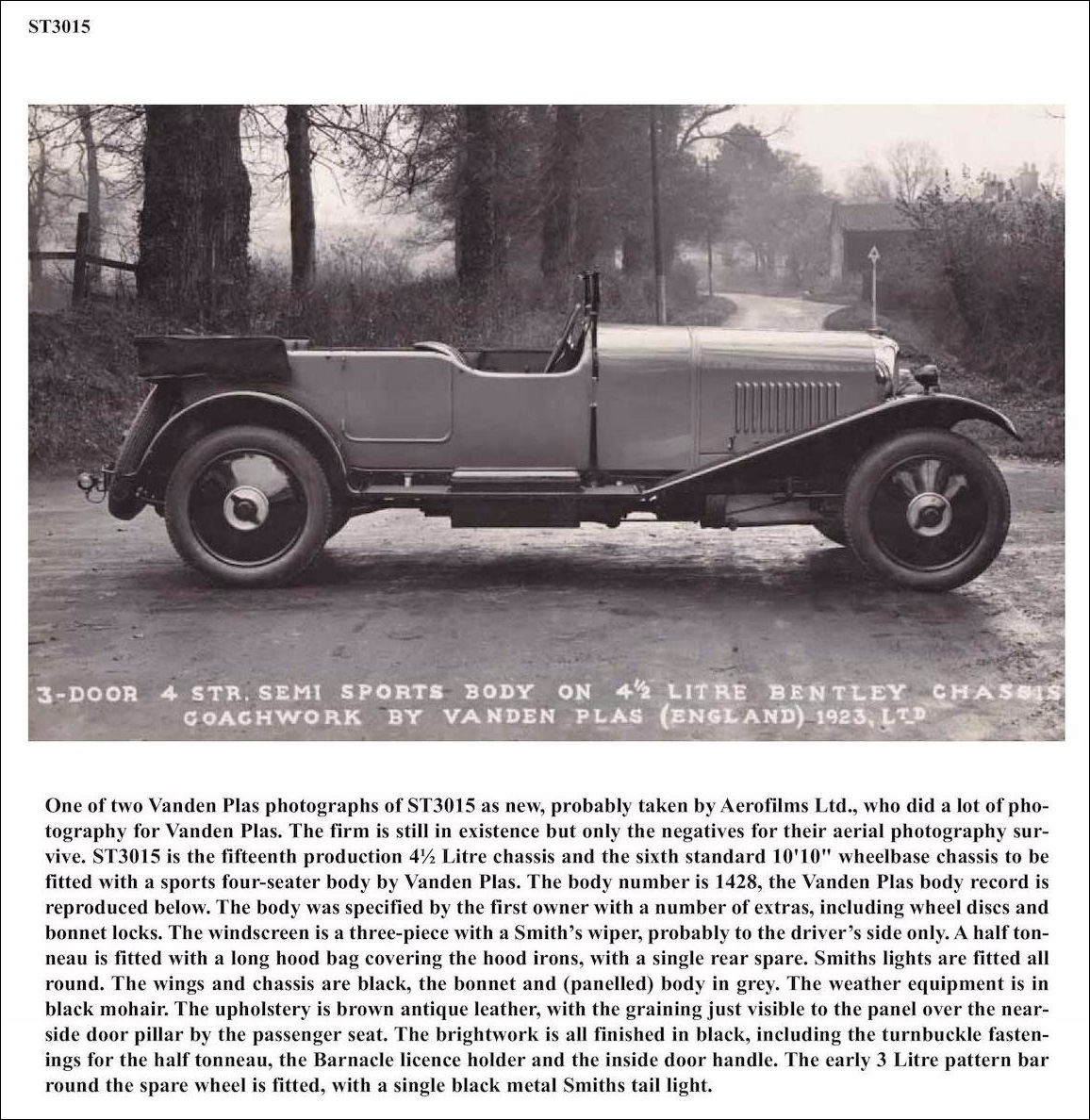 | More Info: | According to original Vanden Plas Coachbuilder records, this car was originally fitted with Body No. 1428 with a 3-door. 4-seater Sports; grey / black; 1/1927. Michael Hay, in his book Bentley: The Vintage Years, 1997, states: "Vanden Plas body no. 1428. Double silencer. Fitted 6 � Litre back axle and eng MR 3392 ex ch. MR 3388." |