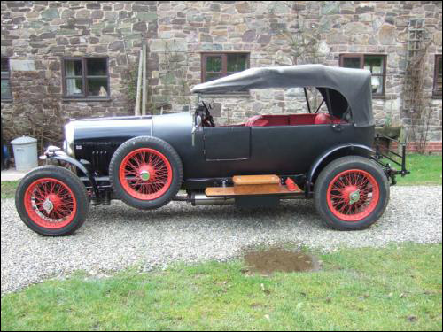 In 1978 the car was stripped to its chassis and rebuilt using full scale templates taken from a Vanden Plas four-seat open tourer. The seasoned ash frame, made by cabinet maker Philip Turner of Cannock, was fitted with aluminium panels finished in layers of hessian, cotton wadding and a waterproof outer layer. Forward of the bulkhead the bodywork is all original.