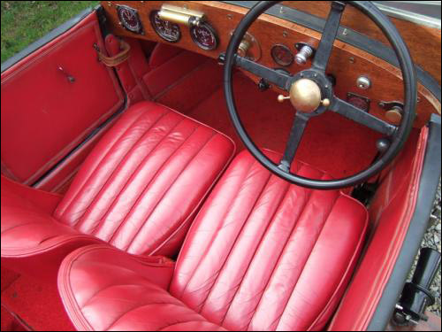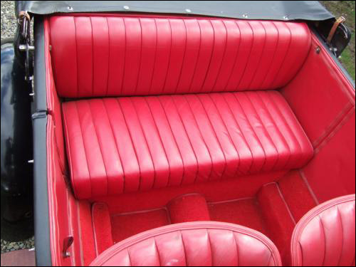 The seats were retrimmed in red hide and remain beautifully soft and supple to this day. A new dashboard was custom made in mahogany and all the original instruments refitted along with a period 24-hour aircraft clock which was on the car when purchased. A new double duck hood and tonneau cover was also made and fitted.