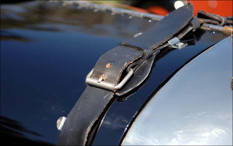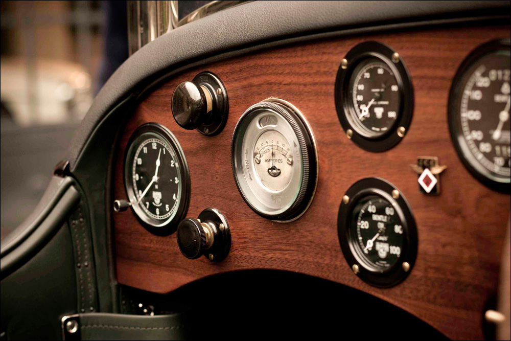 The car is powered by a water-cooled, single-overhead cam, four-cylinder engine with four-valves per cylinder, producing 110-horsepower, coupled to a four-speed gearbox, with overdrive, that propels it to a top speed of 94 mph. Items to note on this example include motorcycle fenders, large LeMans petrol tank, fold down windscreen, and racing instruments.