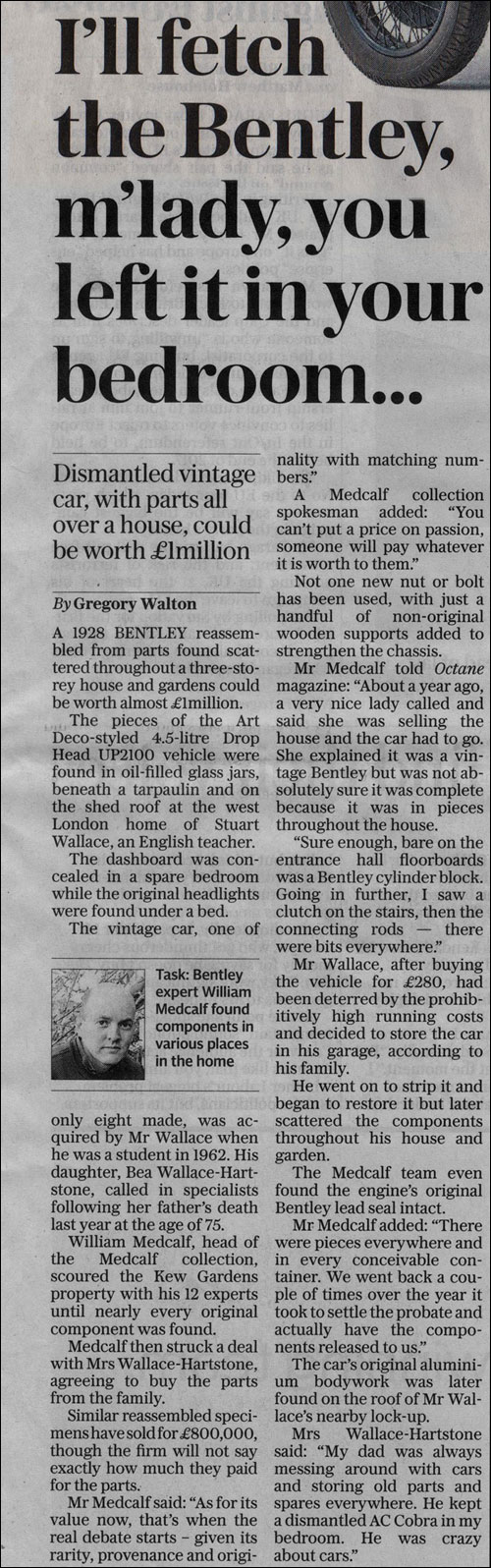 William Medcalf, Bentley specialist and owner of The Medcalf Collection, explains: “About a year ago a very nice lady called and said her father has passed away and that he had a couple of old cars in his house, one of which was a Bentley.”
