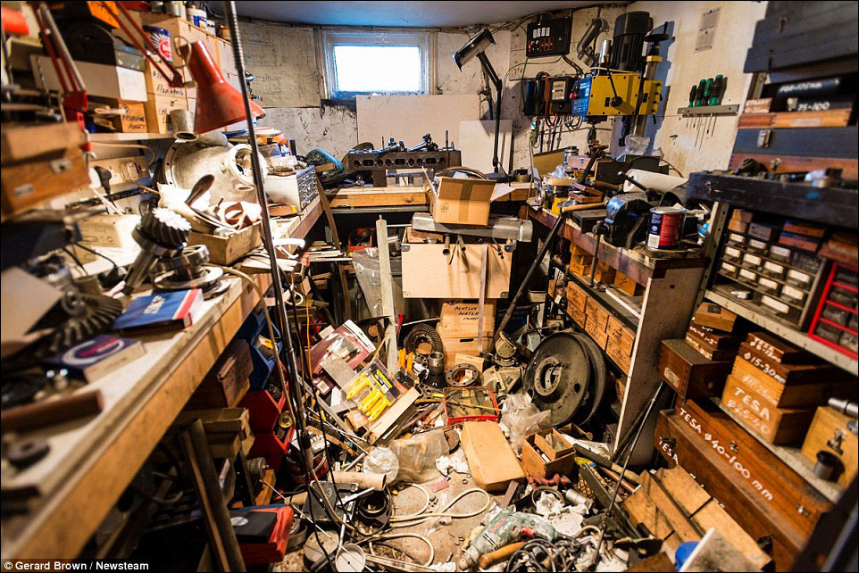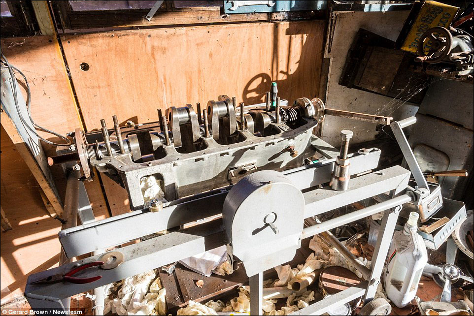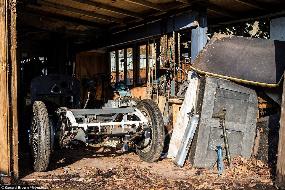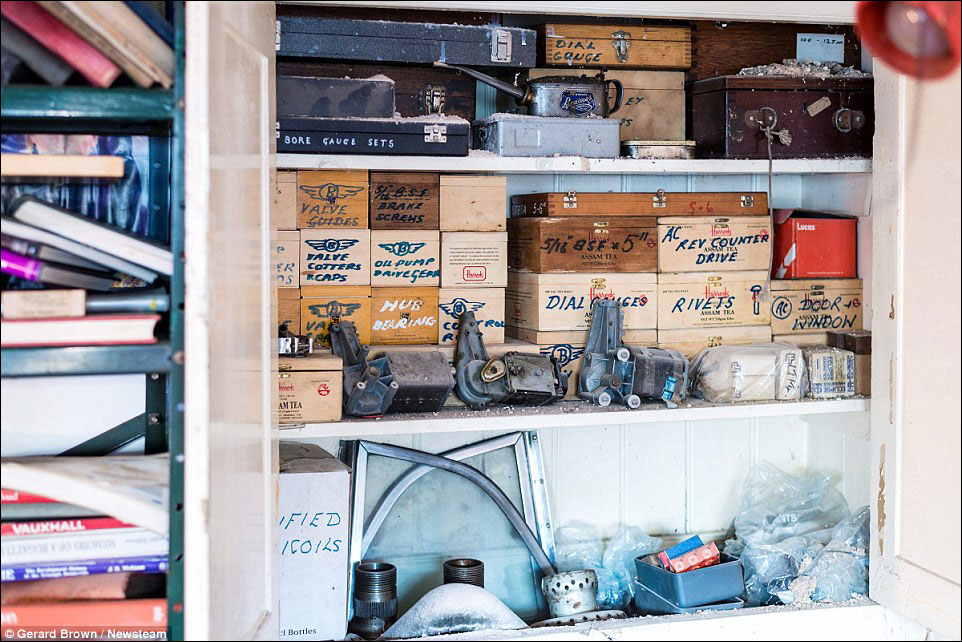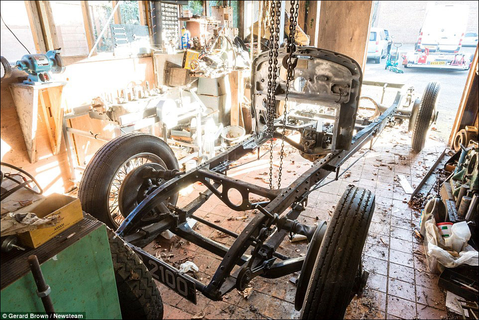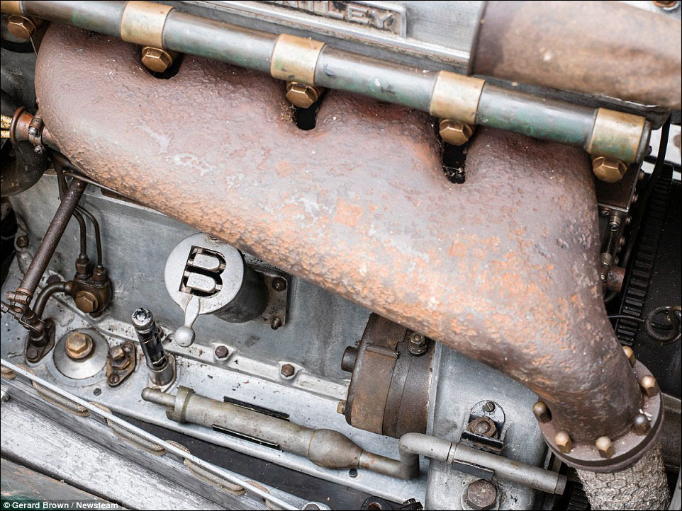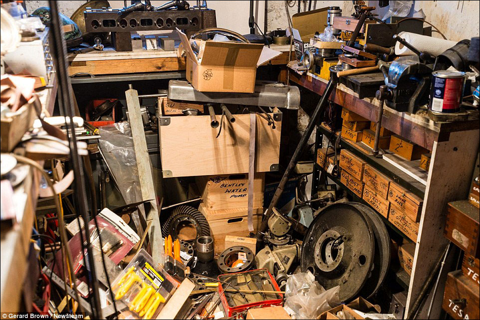 Rather than simply being put into the garage, the Bentley was taken apart and the parts scattered throughout the house with every item being photographed and logged with some parts being stored in jars of oil.