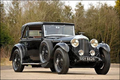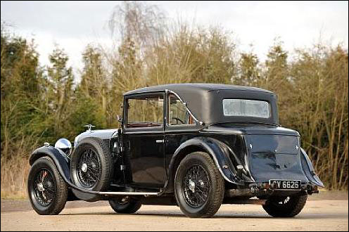 Colour - Black, Black leather roof/Brown leather, Estimate $236,469 - $262,743; Cosmetic restoration, 3+condition; Hammered Sold at $ 170,783 plus commission of 14.62%; Final price $195,744 -- RHD. Sliding sunroof dual sidemounts, opening windshield, bud vases, fog lights, four helmet-style taillights, trafficators, pullup rear window roller shade. Rough old repaint over chipped old paint. Sound old interior and leather roof covering. Aged chrome. Some delaminating glass. Chassis looks like it has never been touched and is the essence of patina. A neat old car which is represented as having had a restoration in the early 90's with 12,000 subsequent miles. September 2006 winner of an "authenticity" prize at the Palais het Loo concours. Original engine, chassis and body built to the specification of the first owner, Phillip Carr. Despite its aged and used condition, this is a very nice example of the rarest of all Bentleys, particularly important because it has all of its original bits and pieces, including the very handsome and sporting 2-door sedan fabric paneled coachwork. An outstanding Bentley, bought for a very reasonable price.