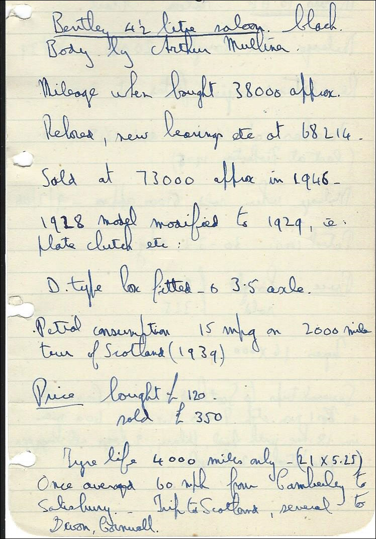 "Looking through my late father's photo album, he owned this car for a number of years. His name was RAC Sumner (Bobby). He describes it as a Mulliner Saloon. I also attach a copy of his notes on the car.