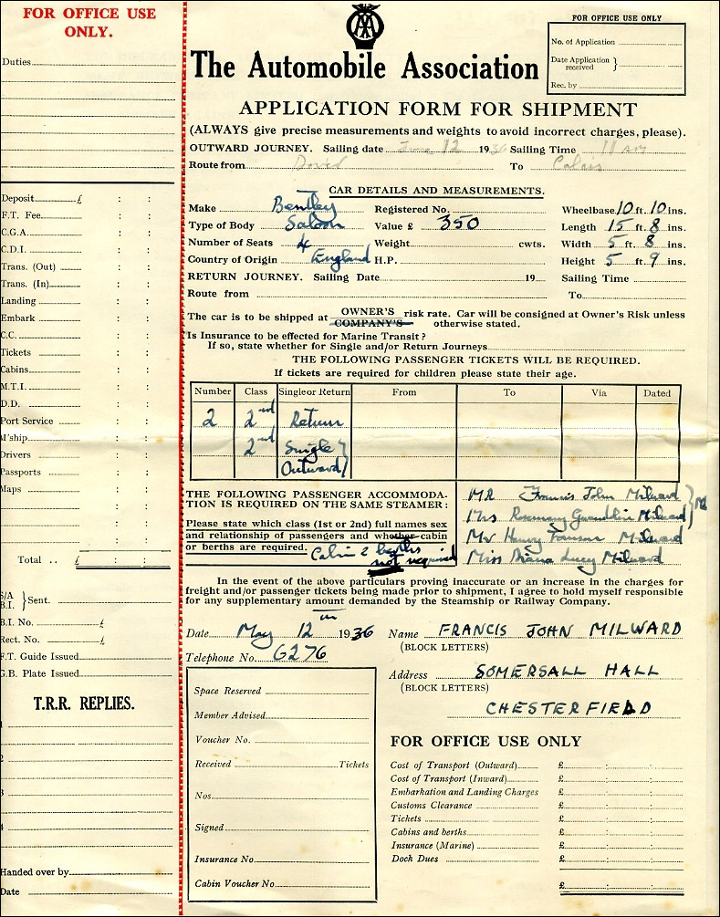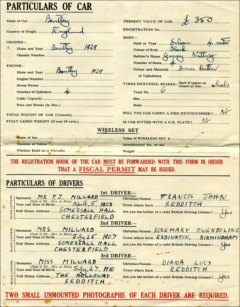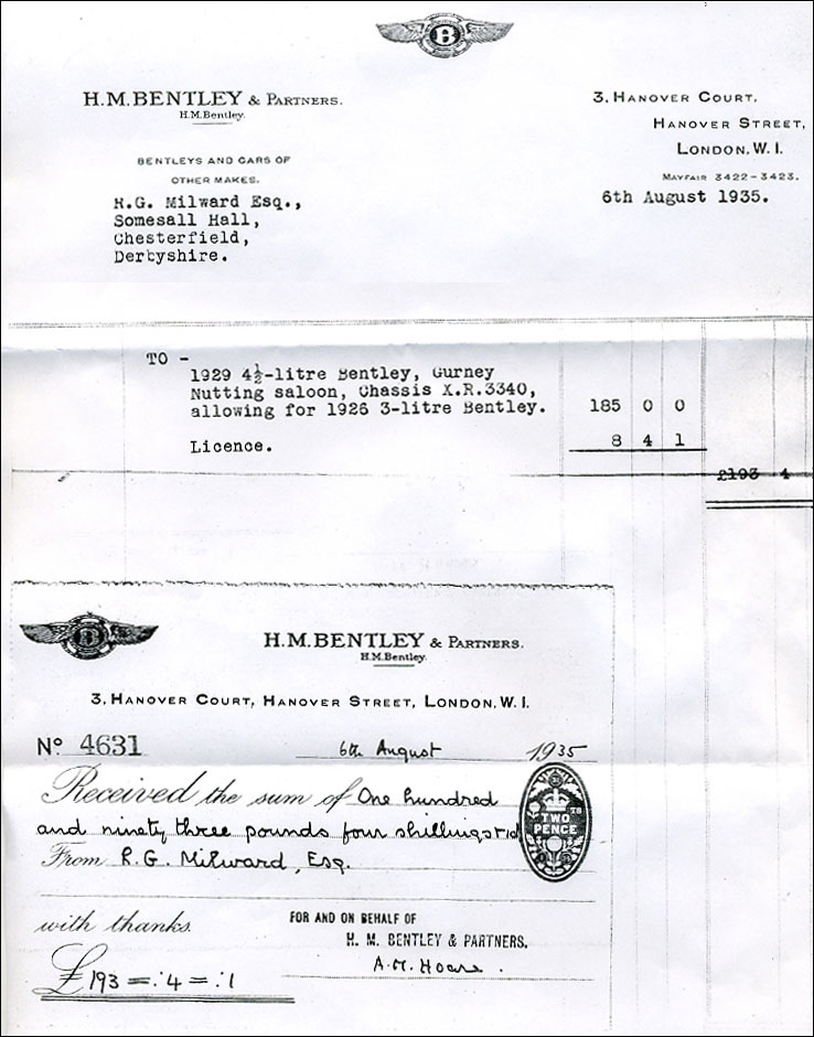 This car was purchased by John Milward of Milward Needles from HM Bentley & Partners, Hanover Street on August 6, 1935. (View payment receipt above.)