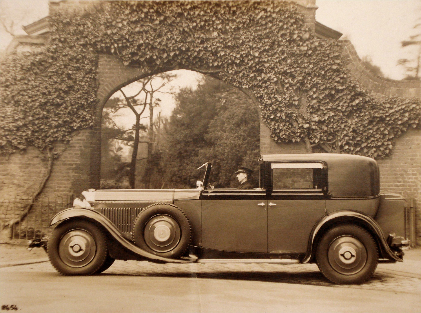 An original Bentley Motors Limited photograph of a Bentley 8-Litre Fixed Head Cabriolet de Ville by Thrupp & Maberly Ltd, sepia tone, depicting the car, complete with chauffeur, originally supplied to a Captain F A Pearson, the reverse bearing photographer's and BML stamps with details of body particulars.