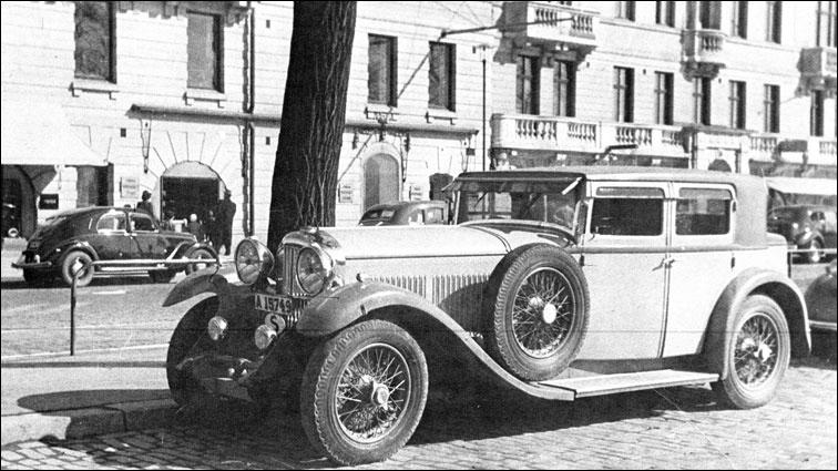 YF 5009, registered in Sweden as A (Stockholm) 15749 at Strandvägen, a fashionable street in the center of Stockholm. Date of photo is not known but the cars shown are all late thirties cars - the small car seen on the opposite side of the street is a Lancia Aprilia. Thus, probably late 1930´s, but might be after the war in the late 1940´s before the car was given to the National Museum of Science and Technology in 1951. Except for renewal of tyres the car has not been restored or modified in any way - and might thus be the most original 8-litre in existance. The coachwork is absolutely right for an 8-litre - in all a magnificent car.