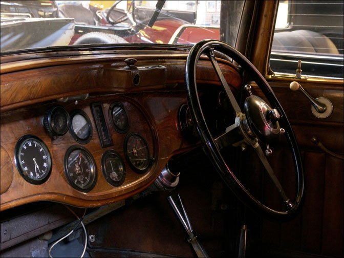 8 Litre YF5009 at Bil-och Teknikhistoriska Samlingarna i Köping (Sweden) where the car is deposited on loan from National Museum of Science and Technology. Given to the museum in 1951 and not restored other than replacement of tyres. The look of seats is due to the Dunlop air cushions being emptied of air. Minor fittings like rear ashtray in armrest and carburettor dashpot caps stolen. Side cam covers replaced with plexiglass to expose valve mechanism.