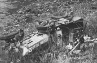 "Vintage 8-liter Bentley of Keith Schellenberg had developed a split oil line and was one of the few cars to be penalized on the road. It eventually retired when the dirt road beyond Sivas (a place in Turkey) proved incapable of supporting its weight."