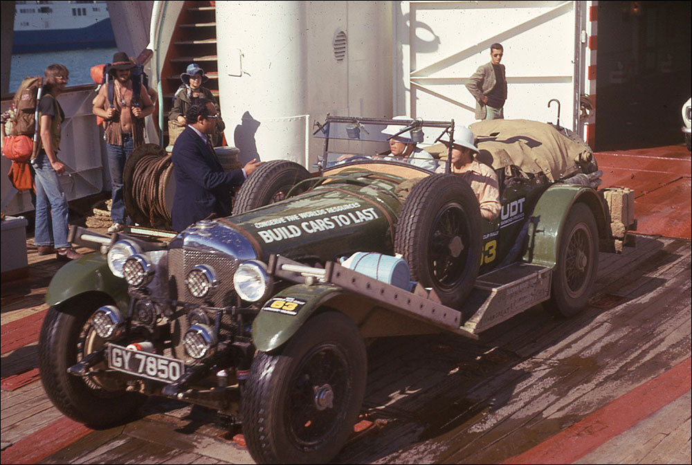 "In the end there were 100 entrants, 98 of which actually started from Crystal Palace. Unbeknown to the competitors, Jack had been told by P&O, the shipping company, that there was space for only 70 cars on the ferry from Bombay to Perth in Australia. As a result everyone on the organisational side was hoping that there would be serious attrition on the way to Bombay. As luck would have it, 72 cars actually reached Bombay, and with a bit of judicious pushing and shoving, all 72 were squeezed onto the boat. Sadly it did not include the Schellenberg Bentley which had gone off the road, arriving in Bombay after an epic recovery to find that the boat had sailed..."