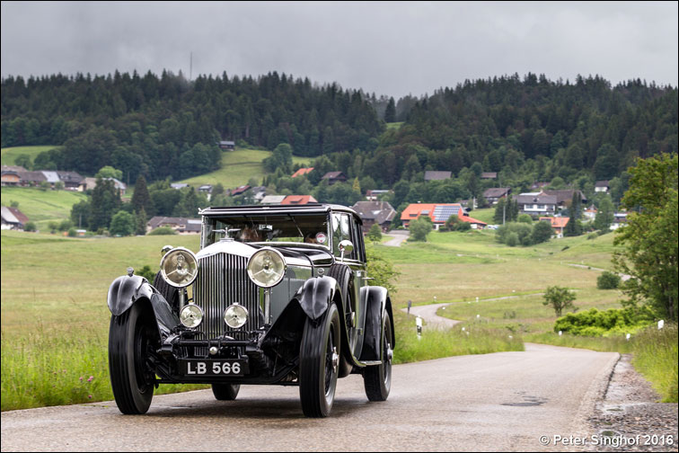 Chassis No. YR5079 was delivered new to the U.S.A. It returned to England, was restored, and then stored at Hoffman's of Henley during the 1990's for a non-British owner. I saw this lightweight H. J. Mulliner Weymann Saloon at Hoffmann's several times while the car was stored there. Very impressive car in very good lightly restored condition. I think Mulliner made a few of these lightweight saloons — with sliding windows — as the doors are too thin for ordinary wind-up glass.