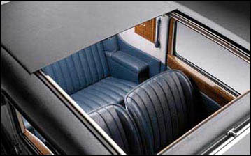 This example has a blue leather interior. There is a sliding sunroof and ample space for luggage in the rear custom built compartment."