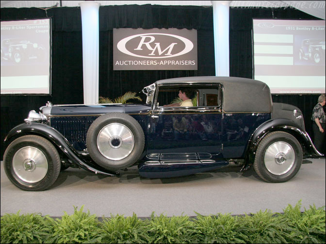 "This 1931 Bentley 8-Liter Sportsman Coupe has coachwork by J. Gurney-Nutting. It has won the 1932 RAC Best Coachwork Award, and the 1999 Best in Show of the Louis Vuitton Classic at the Hurlingham Club. In addition, it has won a number of BDC Awards and a Second in Class at the Pebble Beach Concours in 2001. It is powered by a 7983 cc, overhead camshaft inline six-cylinder engine with four valves per cylinder, dual carburetors, and capable of producing 220 horsepower at 3500 rpm. A four-speed manual gearbox sends power to the rear wheels while the four-wheel servo assisted drum brakes provide the stopping power. It sits atop a 156 inch wheelbase and suspended in place by semi-elliptic leaf springs in both the front and the rear.
