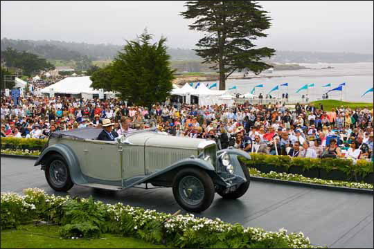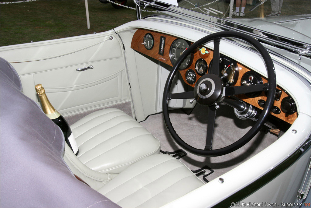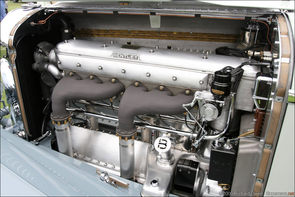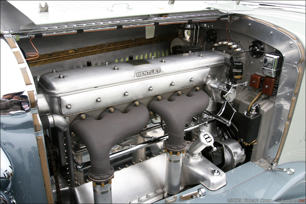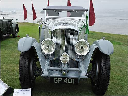 YR5095-1931 Bentley 8 Litre Short Chassis Vanden Plas 4-Seat Tourer. Commissioned by Bentley Motors chairman Woolf Barnato for his honeymoon in the USA. Unique features include fold down windscreen, dual rear mounted spares, complete tool set, fitted luggage and a French pillar-swivel spotlight. At the request of Barnato, all the brightwork was done in copper. Invited by Autocar to the 1936 Festival of Speed at Brooklands and it reached over 100 mph. Recently sold by Charles Crail Automobiles who described it as "undoubtedly the finest original example of a W.O. Bentley" and "A chance of a lifetime to own one of the world's great Bentleys." Subsequently restored for Peter G. Livanos and displayed at the 2009 Pebble Beach Concours.