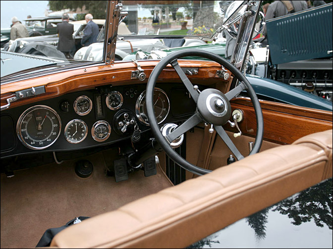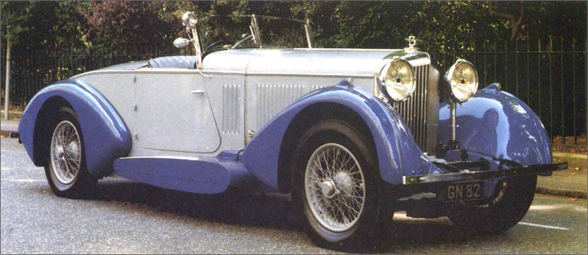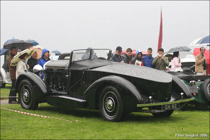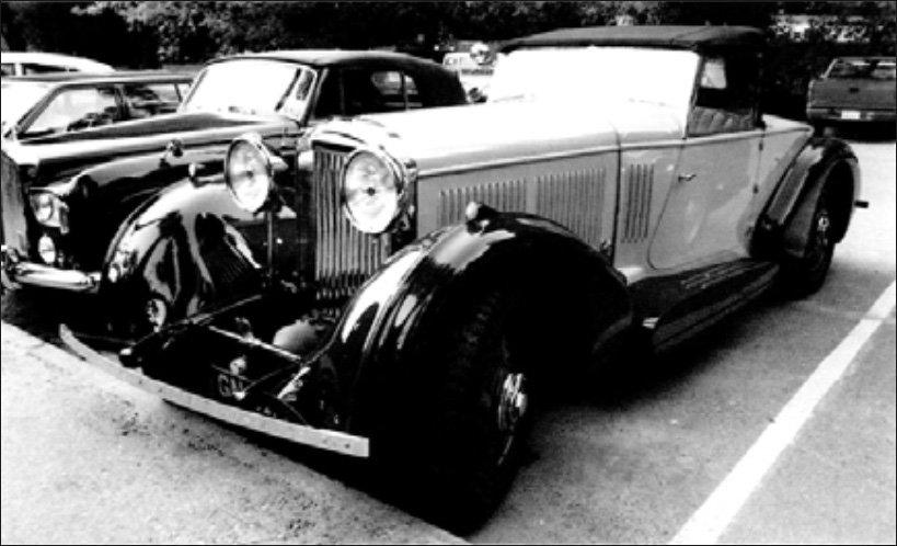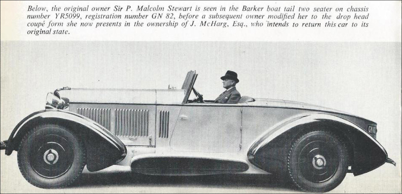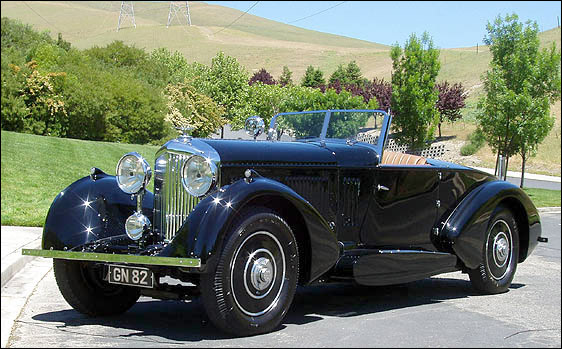 "From his home in Scotland the original owner, Sir P. Malcolm Stewart, ordered this '31 8 liter boattail tourer to add to his impressive collection of motorcars. YR5099 was very similar to the Speed Six that was built for the 1930 Olympia Car Show. At some point the car was converted to a drophead coupe and it wasn't until sometime in the 70's and early 80's that it was restored by James McHarg to its original splendor. Teardrop front wings cleanly point toward the pontoon-style running boards, making a very stylish art deco tourer." — From the article 'Ultimate Hill Climb: Yosemite Inter-Regional', Text by Martin Mayer, CA and photos By Harold Pope, CA& Richard Murray, CA