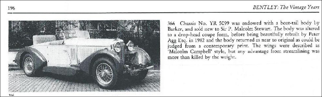 | More Info: | Michael Hay, in his book Bentley: The Vintage Years, 1997, states: "F/8076. Body converted to drophead coupe - now rebuilt to original pattern." |