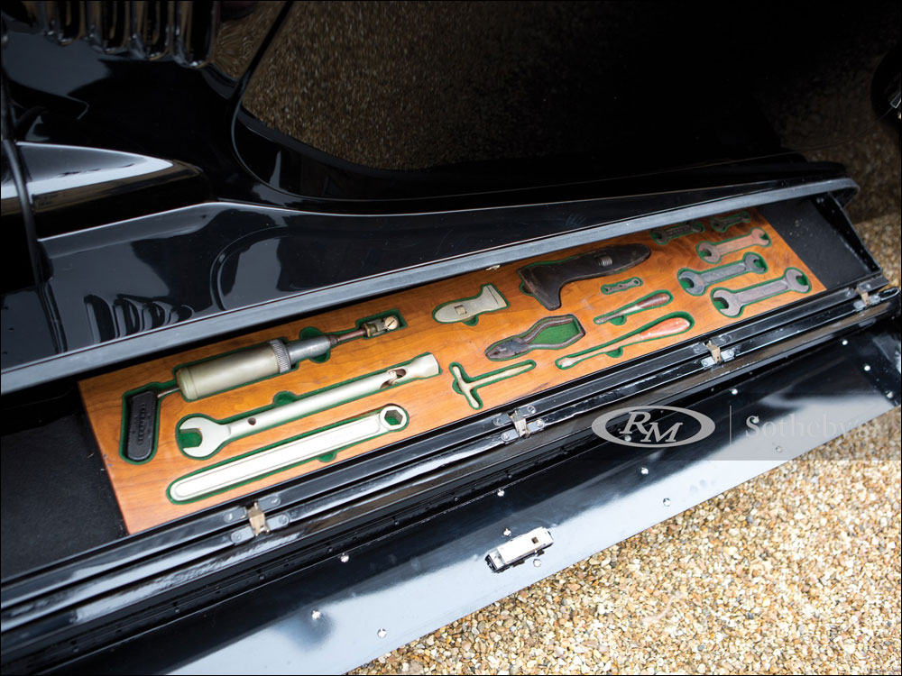 A very interesting body featuring hinged tonneau panel and disappearing hood, Dickey seat and lift-up tail section revealing the spare wheel stowage.