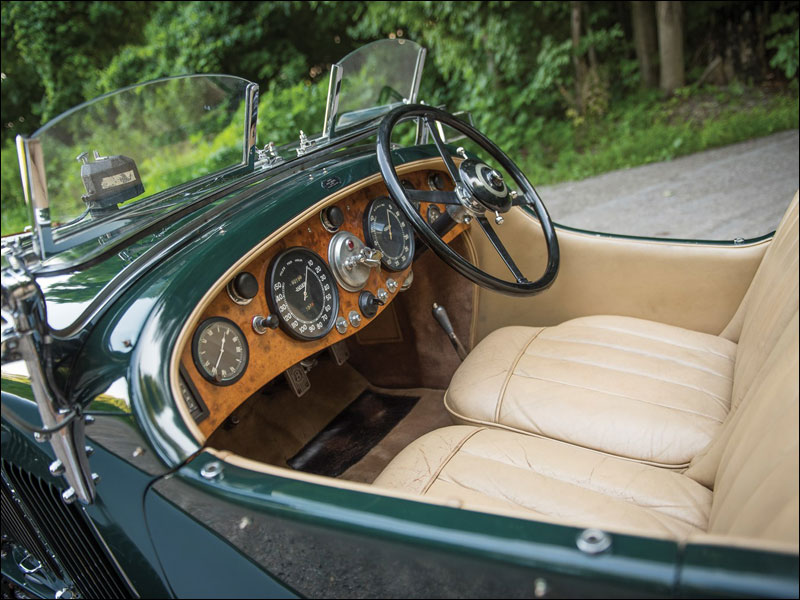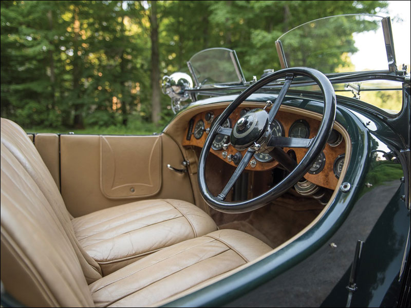 This car then filled the order of Sir Everard Talbot Scarisbrick, 2nd Baronet and 30th Lord of Scarisbrick in Lancashire, and was undoubtedly delivered to his ancestral home, Scarisbrick Hall in Ormskirk. Sir Everard was indubitably a connoisseur of fine motorcars; his name appears in the history of several interesting automobiles of this time period, and this was, in particular, his third Bentley. Fitted with a four-passenger tourer body by the London coachbuilders Mayfair, it was delivered to the Baronet in May 1932 and underwent almost continuous fine-tuning in his ownership. A Jaeger speedometer and rev counter were fitted in July of 1932, followed in February 1934 by a higher-ratio 15/53 crown wheel and pinion, and three SU fuel pumps in lieu of the original Autovac.
