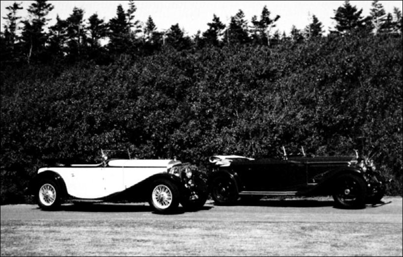 Seen here at a joint RROC/CCCA kite flying picnic meet at Ft. Casey on Whidbey Island, Washington, in May, 1989, are representatives of two of the greatest models built. If you could own but one of these two spectacular specimens, how would you decide which? Drive them both, then pick the Phantom II not for its sheer performance where the 8 Litre clearly scores best, but for the sweetness of the steering and gear change and the overall lightness of the car. Someone once said that the 8 Litre has what could be called a 'thinking man's gearbox'. They are both 12 foot chassis; both have their original coachwork -- one from England, one from Brussels, hence the two spellings.