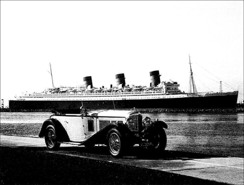 "The Queen Mary's presence was felt throughout the Meet. Here she forms an appropriate Art Deco background for Ted Reich's 8 litre Vanden Plas tourer, YX5122 — best in the Vintage Bentley class and winner of the Vintage Bentley Longest Distance Award. YX5122 motored down from Pebble Beach, where she had won the 8 litre class." — From the article 'The Perfect 36: 1987 National Meet, Long Beach, California' by Phil Brooks